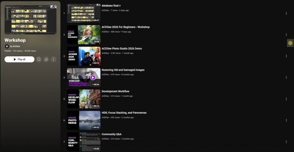 Beyond the software itself, ACDSee invests heavily in user education through official resources, including a library of free courses on their YouTube channel as well as regular free online workshops that help users sharpen their skills and fully unlock the platform’s potential. These learning opportunities make the transition from Lightroom even smoother, ensuring photographers are well supported every step of the way.