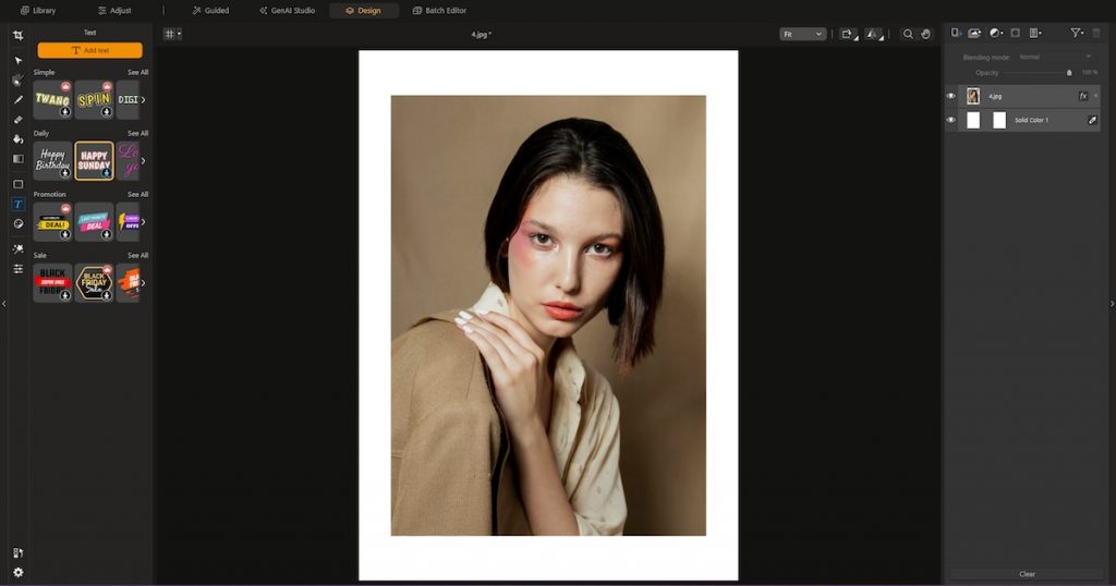 Another feature that deserves attention is the Design module, which gives PhotoDirector a creative versatility that’s rare among free photo editors. It offers a simplified layer-based workspace, allowing users to combine text, graphics, and images in a way that feels somewhat reminiscent of Photoshop but with a much gentler learning curve. It’s perfect for photographers who occasionally need to create social media visuals, promotional posters, or composites without switching to another program. The interface feels light and approachable, encouraging experimentation without the intimidation of professional design software.