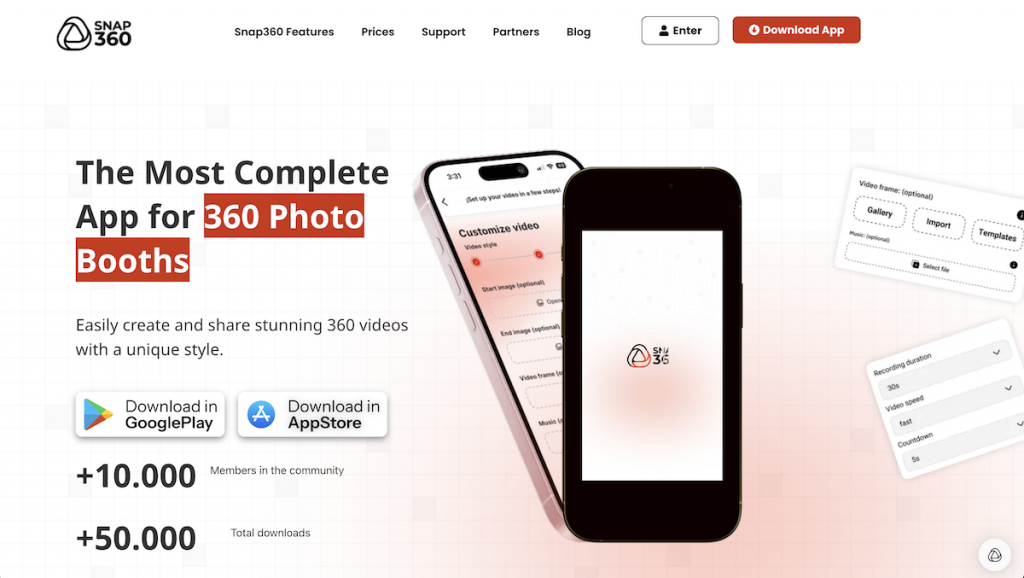 Snap360 is a mobile-first photo booth app built specifically for running 360° video booths with minimal hardware and setup. It works on both iOS and Android devices, allowing you to use smartphones or tablets as the main control system instead of a laptop or desktop setup.