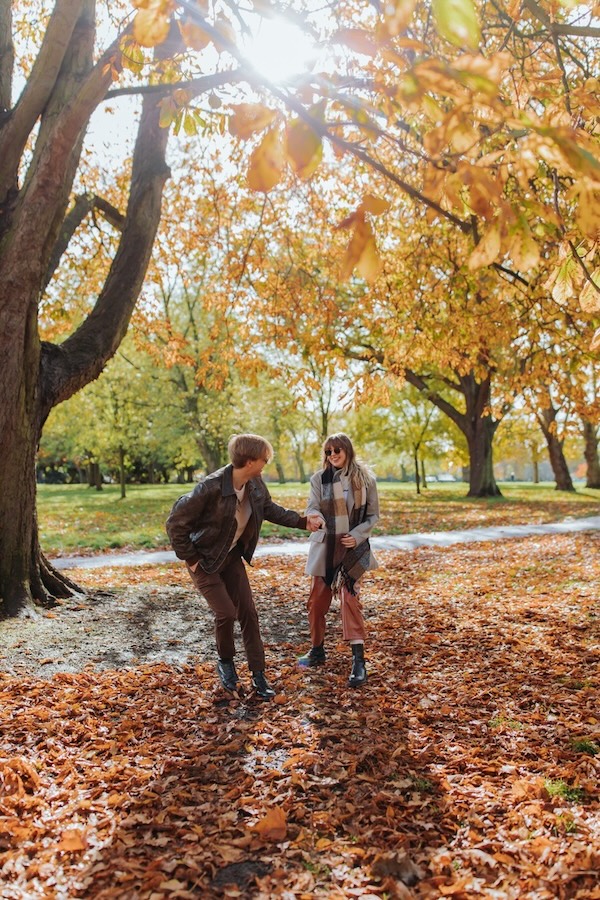 Prompt: “Grab each other’s hand and start moving forward like you’re about to run through the leaves.”