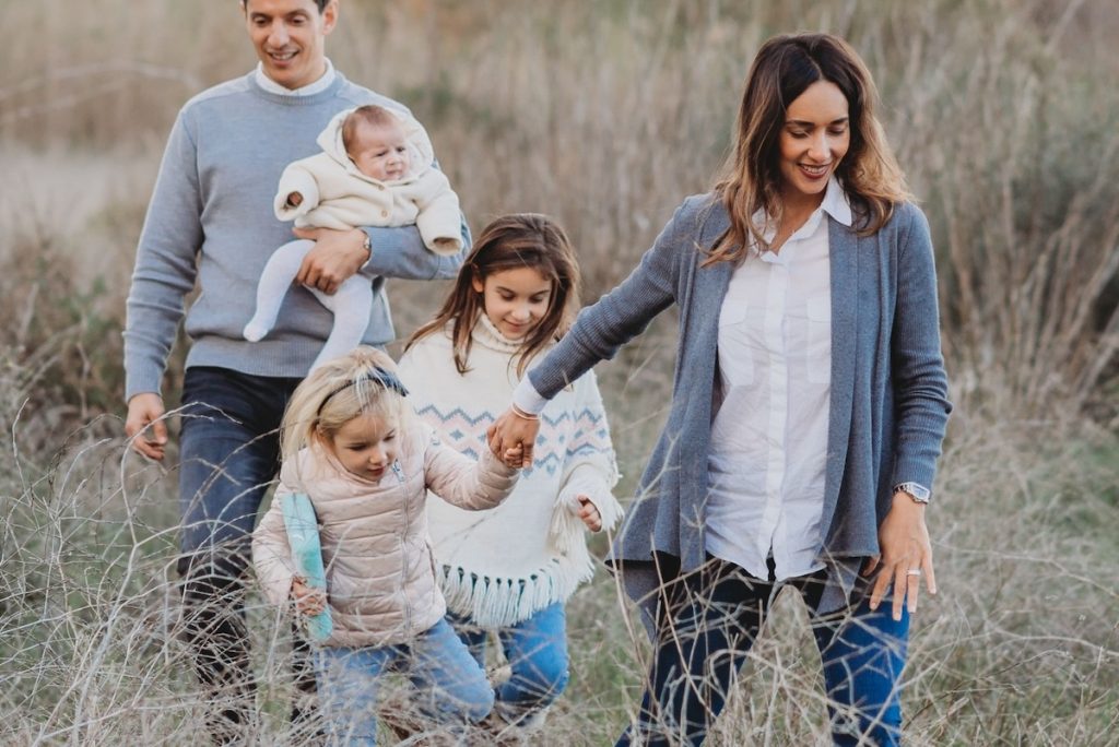 Prompt: “Kids, you go first—run, skip, or jump through the field. Mom and dad, just follow along behind them.”