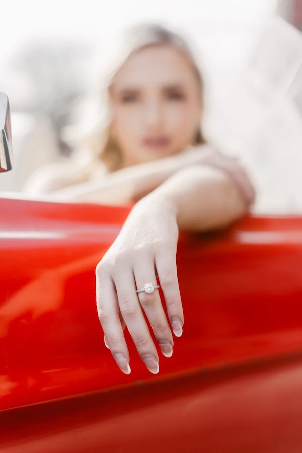 Prompt: “Rest your hands in front and let the ring be the focus, while you glance toward the camera.”