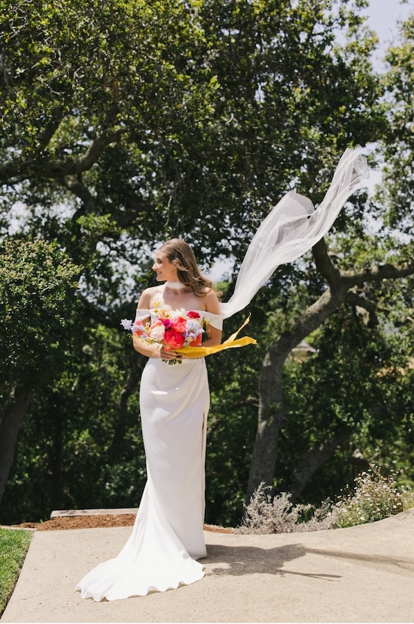 Prompt: “Hold your bouquet and flash a smile for the camera, like you’re soaking in the view and loving every second of it.”