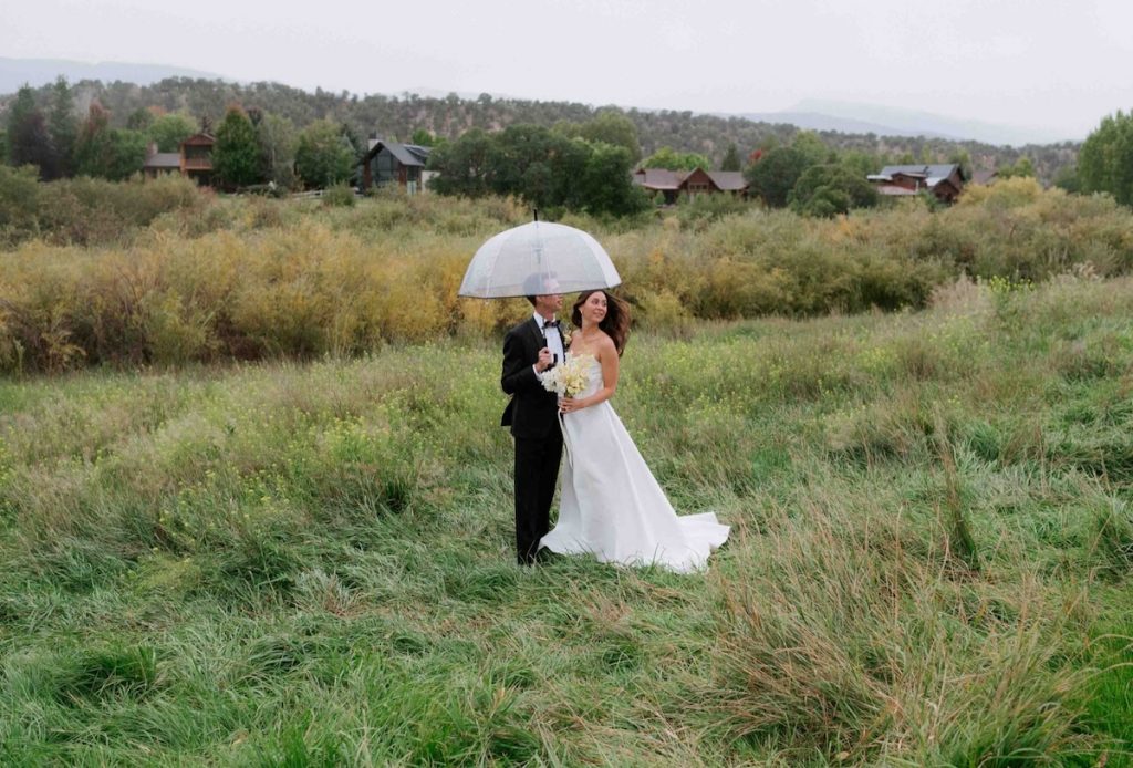 Prompt: “Hold the umbrella and bouquet and look off in the same direction for a moment.”