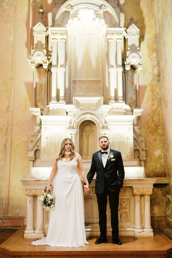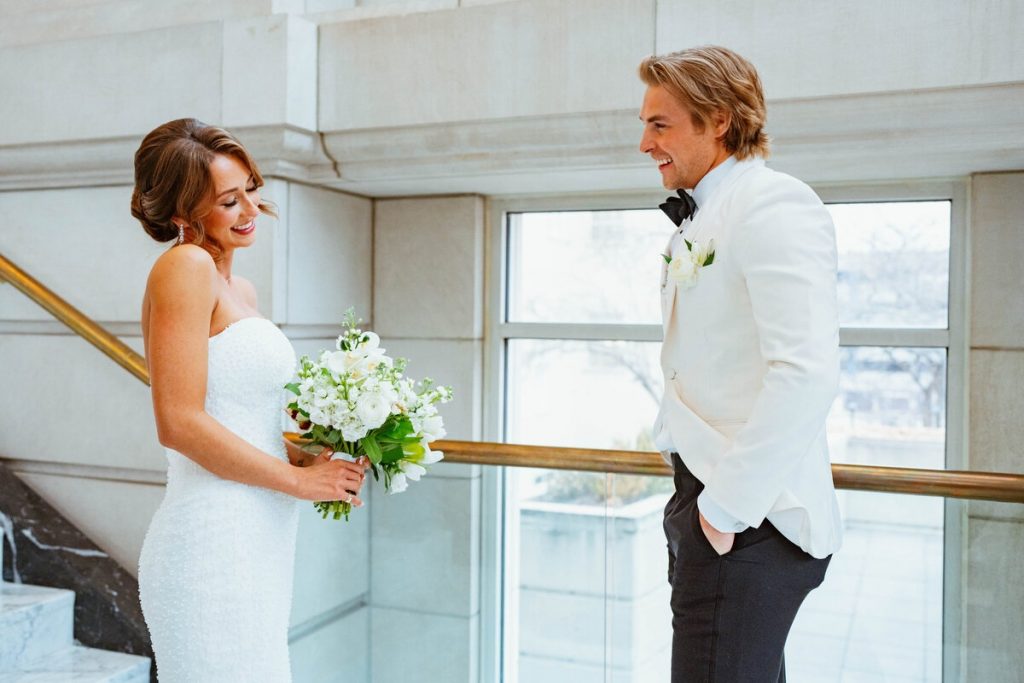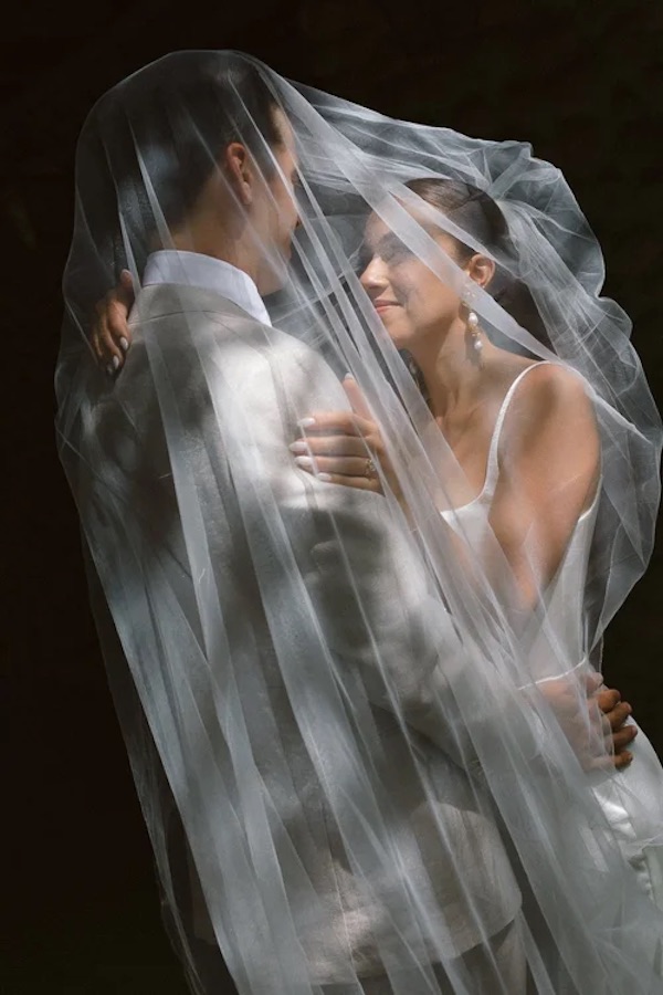 Behind the shot: Place the bride slightly in front and let her turn back toward the groom. Capture the quiet connection in their eye contact and body language, keeping the moment calm, intimate, and unforced.