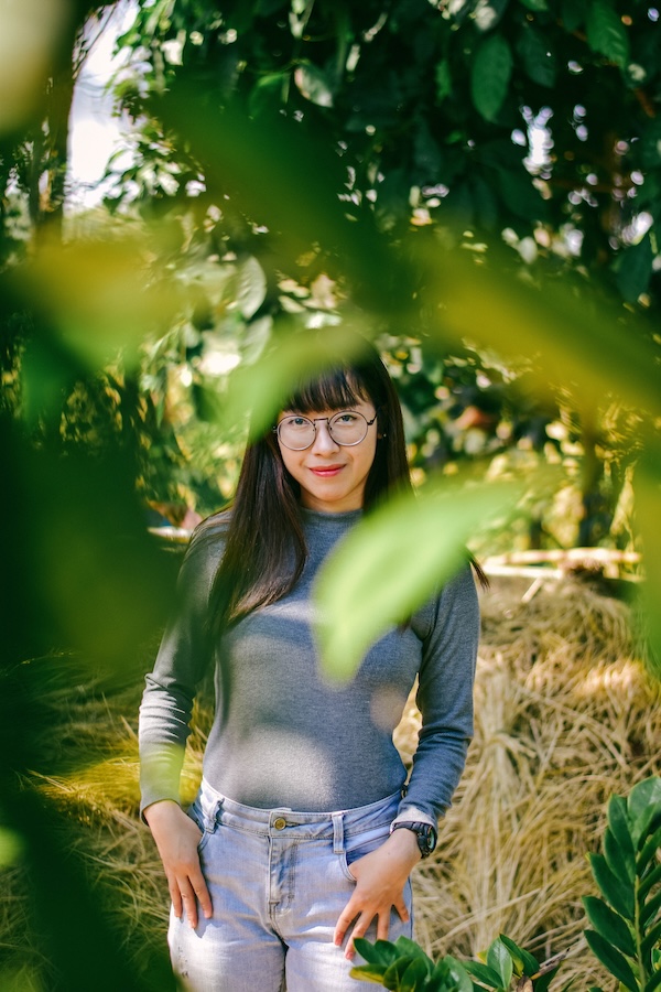 Have them lie on their back or stomach on the grass with their head tilted towards you. It creates a dreamy, grounded feel, especially when shooting wide open with a blurred foreground. Let them play with their hands or gaze up into the sky for variety.