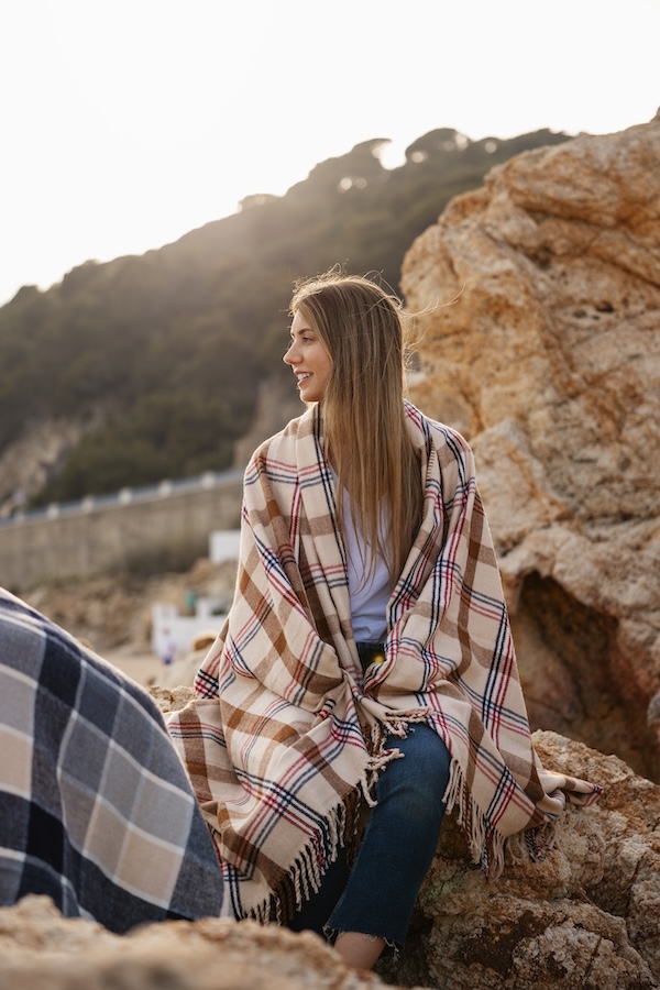 Wrapped in a Blanket or Shawl