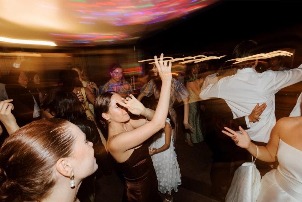 Capture guests dancing with a slow shutter speed to create motion blur. This technique conveys energy, movement, and the lively atmosphere of the celebration. Keep the composition dynamic, allowing the blur to enhance the sense of fun while maintaining some identifiable expressions or gestures.