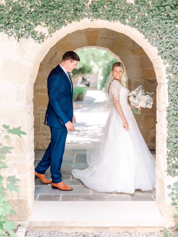 For this wedding photography idea, use architectural features like arches or doorways to naturally frame the couple during a kiss. Let the lines and structure guide the viewer’s eye to the moment, adding context and depth without overshadowing the emotion between them.