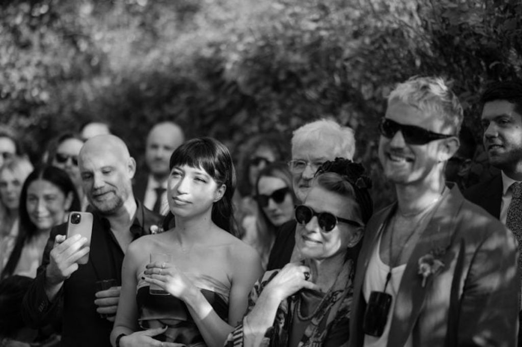 Show emotional reactions from the crowd and guests, focusing on expressions such as tears, laughter, and quiet smiles. Converting the image to black and white removes distractions and emphasizes feeling and atmosphere. Keep the framing thoughtful and unobtrusive to preserve authenticity and the emotional weight of the scene.